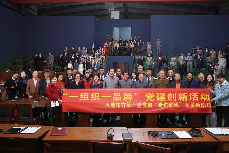 在拍攝現(xiàn)場,黨員們和老一輩革命家的扮演者真摯地握一次手,尊敬地鞠一個躬,交織著時空的錯亂感,激發(fā)了每一名黨員心中的歸屬感、使命感與歷史責(zé)任感。探班現(xiàn)場,五星東方公司黨總支書記、董事長鄭立新與劇組演員進(jìn)行了親切交流,充分贊揚(yáng)了老藝術(shù)家們的敬業(yè)奉獻(xiàn)精神,要求公司全體黨員要以他們?yōu)榘駱?,不忘初心、牢記使命、?chuàng)新進(jìn)取,為公司發(fā)展貢獻(xiàn)力量。