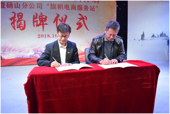 (旗幟電商服務(wù)站主要負(fù)責(zé)人和碭山縣李莊鎮(zhèn)壹體水果種植合作社簽約)