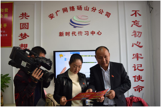 (以黨建促進(jìn)企業(yè)宣傳,黨員向用戶講解十九大會(huì)議精神,碭山縣廣電臺(tái)現(xiàn)場采訪)