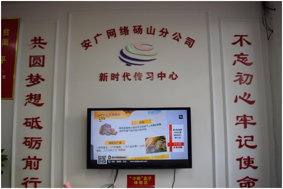 (安廣網(wǎng)絡(luò)碭山分公司傳習(xí)中心,電視上每天不間斷循環(huán)播放黨建基本內(nèi)容)