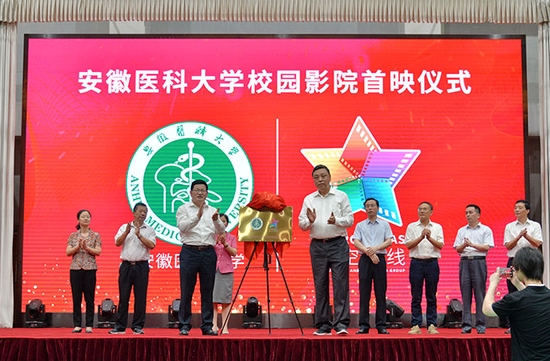 9月9日,安徽電影集團(tuán)·安徽醫(yī)科大學(xué)——安徽星空校園影院暨大學(xué)生社會(huì)實(shí)踐基地共建揭牌儀式在安徽醫(yī)科大學(xué)舉行。安徽醫(yī)科大學(xué)校黨委書記顧家山、校長(zhǎng)曹云霞及校領(lǐng)導(dǎo)班子成員,安徽廣電集團(tuán)黨委副書記、董事袁超,黨委委員、工會(huì)主席、安徽電影集團(tuán)董事長(zhǎng)胡濱等出席儀式。顧家山、袁超分別致辭并為安徽醫(yī)科大學(xué)校園影院揭牌,曹云霞、胡濱為大學(xué)生社會(huì)實(shí)踐基地揭牌。