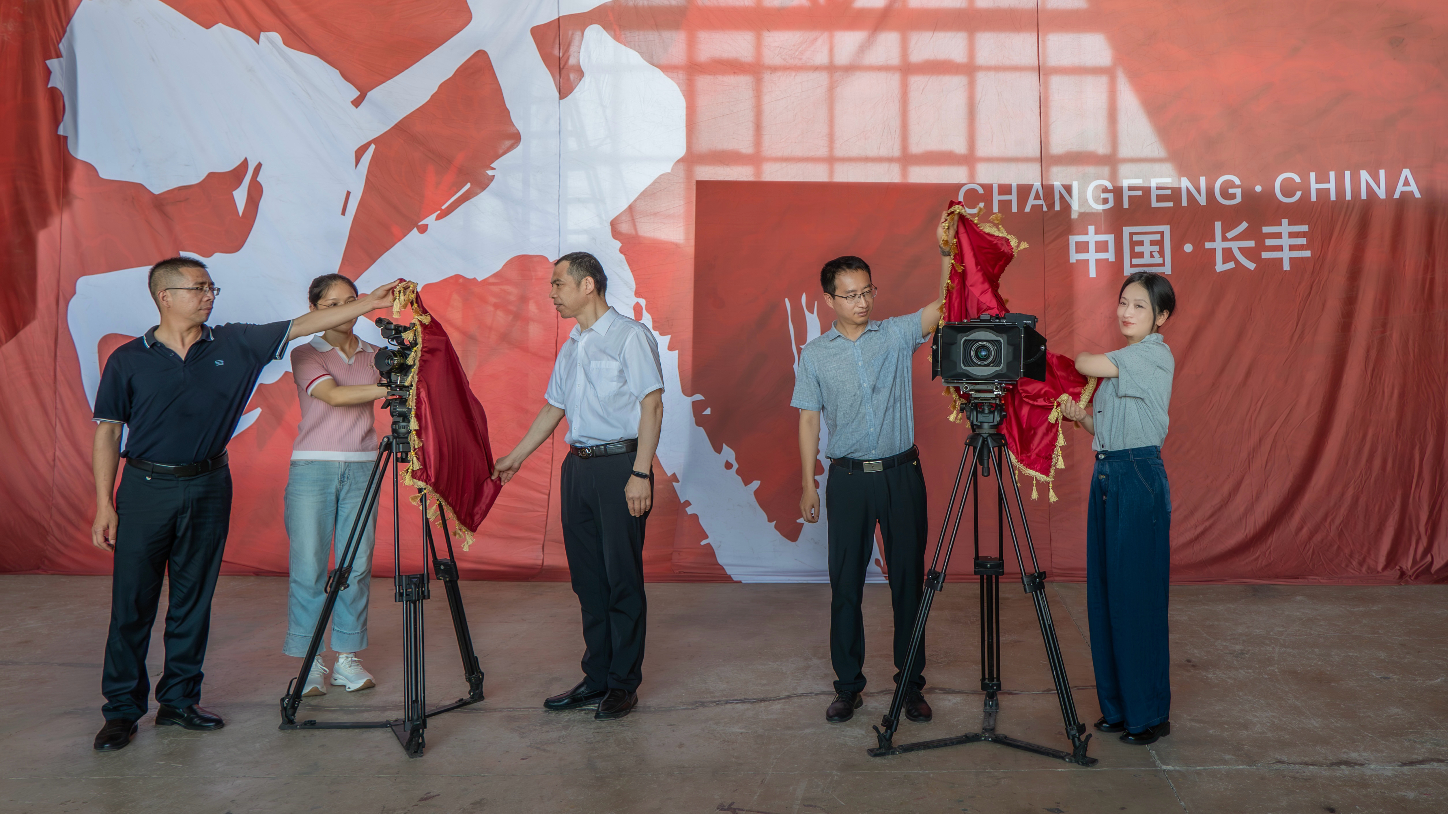 虞詠、張召、李韶華、李峰、孫吉艷共同為攝影機揭幕,并和主創(chuàng)團(tuán)隊代表一起參觀了長豐縣馬郢村。