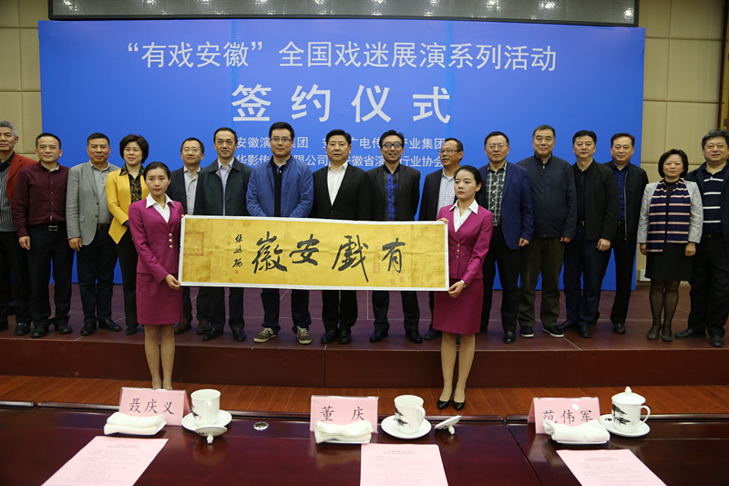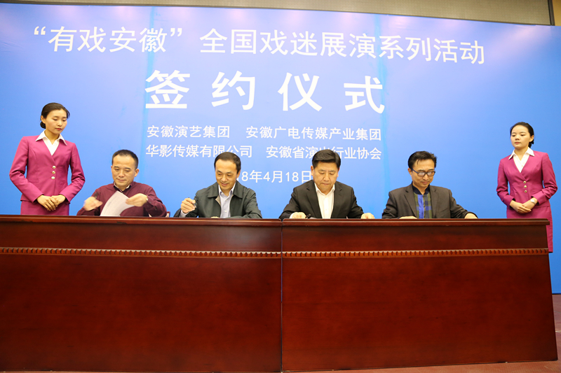 4月18日,“有戲安徽”全國(guó)戲迷展演系列活動(dòng)簽約儀式新聞發(fā)布會(huì)在安徽大劇院舉行。安徽廣電集團(tuán)黨委書記、董事長(zhǎng)聶慶義出席活動(dòng),并代表集團(tuán)與安徽演藝集團(tuán)、華影傳媒有限公司、安徽省演出行業(yè)協(xié)會(huì)簽約。集團(tuán)副總經(jīng)理胡劍華等參加活動(dòng)。