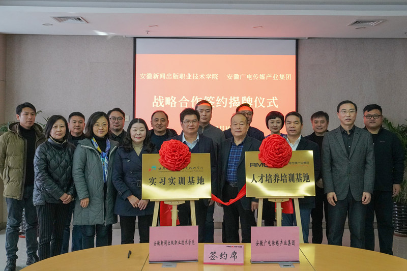 2021年12月30日上午,安徽廣電集團(tuán)與安徽新聞出版職業(yè)技術(shù)學(xué)院簽訂校企合作協(xié)議,并為“人才培養(yǎng)培訓(xùn)基地”和“實(shí)習(xí)實(shí)訓(xùn)基地”揭牌。集團(tuán)黨委書記、董事長(zhǎng)李樹,安徽新聞出版職業(yè)技術(shù)學(xué)院黨委書記武瀟分別致辭并揭牌。集團(tuán)黨委委員、董事、常務(wù)副總經(jīng)理苗峰與安徽新聞出版職業(yè)技術(shù)學(xué)院黨委副書記、院長(zhǎng)岳毅平簽訂校企合作協(xié)議,安徽電影集團(tuán)黨總支書記、董事長(zhǎng)虞詠與安徽新聞出版職業(yè)技術(shù)學(xué)院黨委委員、宣傳部長(zhǎng)、學(xué)生處處長(zhǎng)周玉松簽訂校企合作協(xié)議。集團(tuán)黨委委員、副總經(jīng)理胡濱等出席簽約儀式。