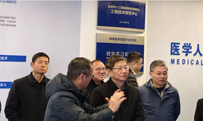 期間,周玉一行實(shí)地考察了蕪湖數(shù)字經(jīng)濟(jì)產(chǎn)業(yè)園,詳細(xì)了解了產(chǎn)業(yè)園的規(guī)劃和建設(shè)情況??疾旖Y(jié)束后,周玉一行赴長三角信息智能創(chuàng)新研究院,實(shí)地參觀了醫(yī)學(xué)人工智能實(shí)驗(yàn)室,聽取研究院研究成果介紹,并與研究院副院長朱孝軍就生命科學(xué)、工業(yè)互聯(lián)等人工智能領(lǐng)域科學(xué)技術(shù)成果轉(zhuǎn)化落地等開展座談交流。