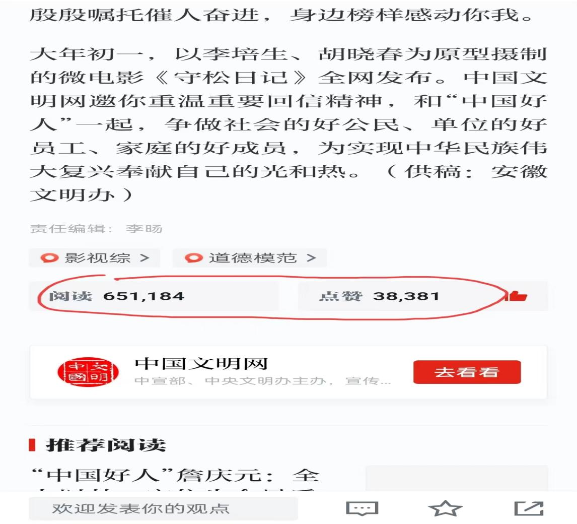據不完全統(tǒng)計,截至2月29日,人民網、新華網等中央媒體,騰訊、新浪、網易、搜狐、今日頭條、鳳凰網等商業(yè)平臺,全國文明網群和各地方新聞網站共有200余家,以《這部微電影,今天全網上線》《微電影〈守松日記〉》為題,在網、微、端等各類平臺的重要位置同步進行發(fā)布,總瀏覽量近300萬,點贊量超6萬。其中,新華網客戶端瀏覽量約73萬,學習強國瀏覽量超65萬、點贊量近4萬,搜狐網瀏覽量超24萬,中安新聞客戶端瀏覽量約8萬、點贊量0.6萬。