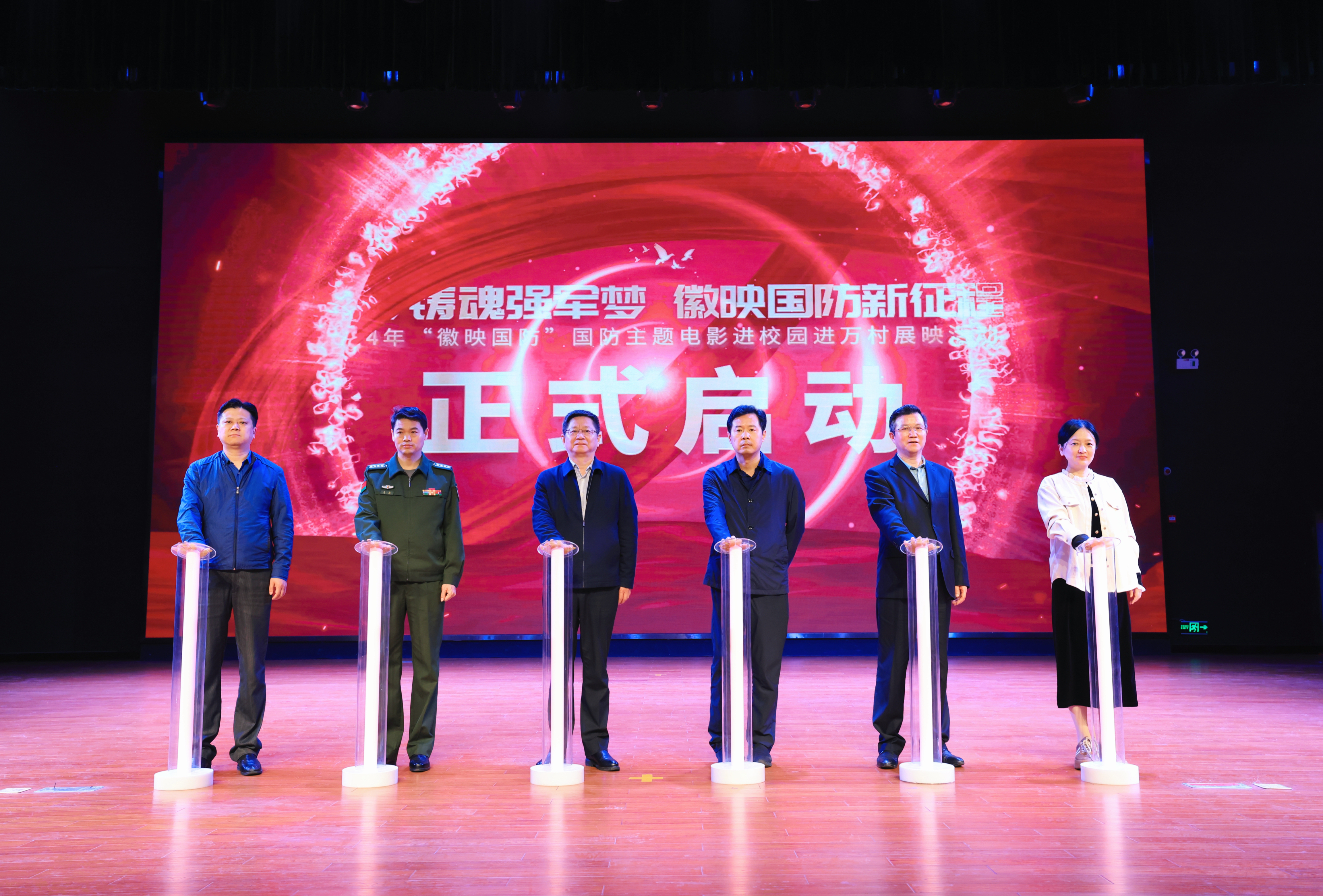 4月18日,由中共安徽省委宣傳部、共青團(tuán)安徽省委、安徽省全民國防教育辦公室指導(dǎo),安徽廣電傳媒產(chǎn)業(yè)集團(tuán)主辦,安徽電影集團(tuán)承辦的2024年“徽映國防”安徽省國防主題電影進(jìn)校園進(jìn)萬村展映活動(dòng)啟動(dòng)儀式,在安徽中醫(yī)藥大學(xué)學(xué)生活動(dòng)中心隆重舉行。省委宣傳部副部長夏少權(quán),安徽廣電傳媒產(chǎn)業(yè)集團(tuán)黨委書記、董事長周玉,省軍區(qū)轉(zhuǎn)業(yè)辦主任路鋒,共青團(tuán)安徽省委學(xué)校部部長鄒永生等領(lǐng)導(dǎo)出席啟動(dòng)儀式,安徽中醫(yī)藥大學(xué)相關(guān)部門負(fù)責(zé)同志和全省高校共青團(tuán)學(xué)生干部、學(xué)生代表500余人共同參加活動(dòng)。安徽中醫(yī)藥大學(xué)大學(xué)黨委黨委常委羅紹明,安徽廣電傳媒產(chǎn)業(yè)集團(tuán)黨委委員、工會主席兼安徽電影集團(tuán)黨總支書記、董事長虞詠先后致辭。