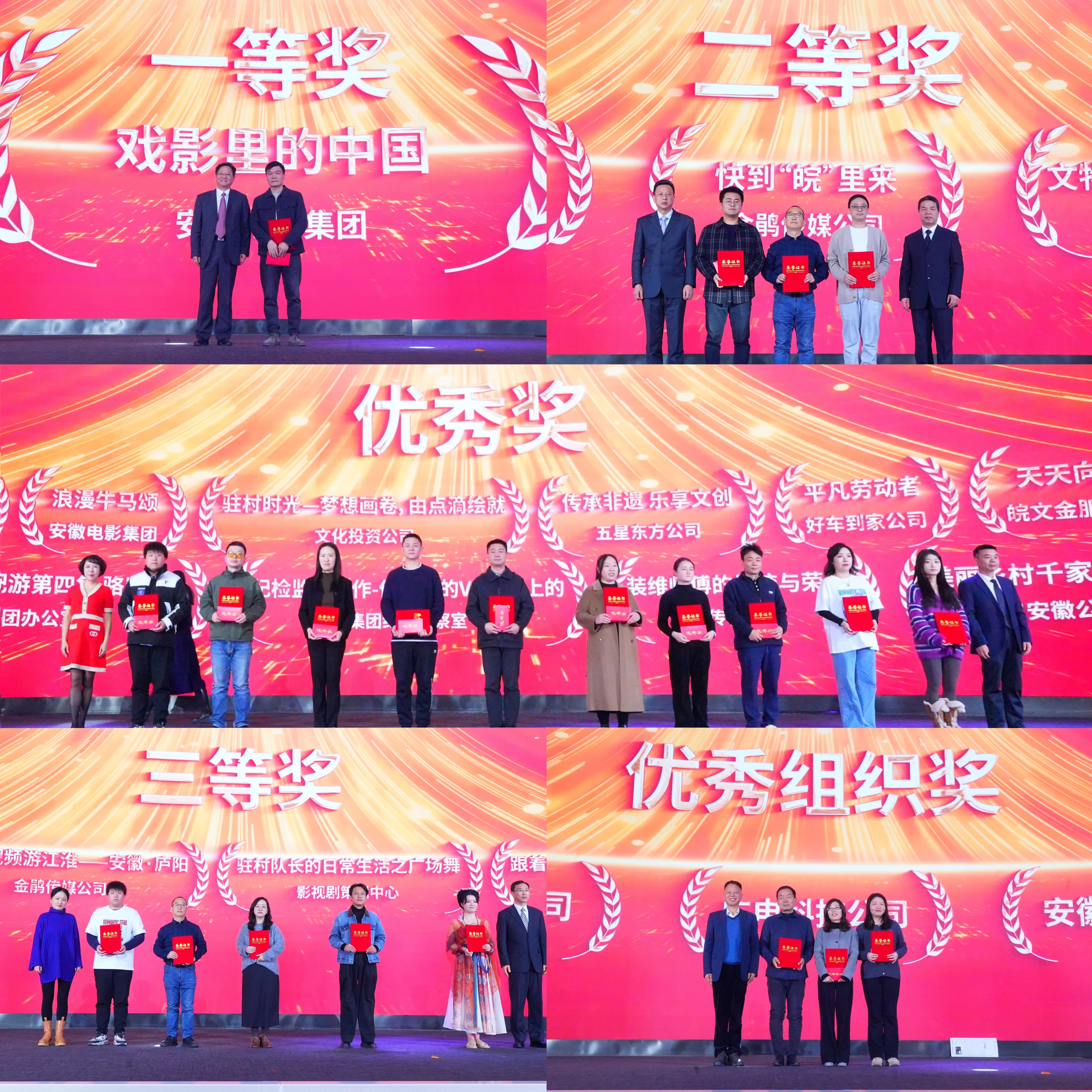 此次大賽共收到短視頻作品73件,經(jīng)過評委的專業(yè)評審,最終評選出獎項22個。作品《戲影里的中國》獲一等獎,作品《駐村隊長的日常生活之采桃》《快到“皖”里來》《文物修復(fù)在行動──跨越時空的守護》獲二等獎,作品《廬州時光橋》《一城一曲》《跟著短視頻游江淮──安徽·廬陽》《駐村隊長的日常生活之廣場舞》《跟著〈渡江偵察記〉游瑤崗》獲三等獎,《師徒四人合肥游第四集──駱崗詩會》《金軌十二時辰》《浪漫牛馬頌》等作品獲優(yōu)秀獎,金鵑傳媒公司、安徽電影集團和廣電科技公司獲優(yōu)秀組織獎。