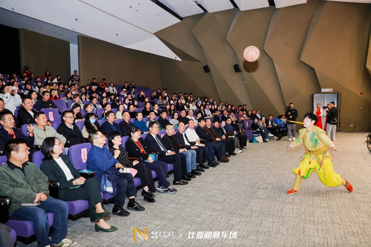 啟動活動上,精彩的表演環(huán)節(jié)為活動增添了濃厚的文化氛圍與科技魅力。原創(chuàng)激光雕刻表演《戲韻光影》將戲曲元素與光影藝術巧妙結合,為觀眾帶來了一場視覺盛宴。徽劇經(jīng)典《貴妃醉酒》選段精彩上演,王丹紅老師的精彩絕倫的演唱,讓現(xiàn)場觀眾領略了徽劇的獨特韻味,贏得了陣陣掌聲。壓軸表演的科技創(chuàng)新秀《機械汽車舞》更是將活動推向了高潮。舞臺中央,重達2.3噸的電動超跑仰望U9隨著音樂節(jié)拍扭動車身,周圍五位舞者同時翩翩起舞,機械與藝術的完美碰撞,給觀眾帶來了前所未有的震撼體驗,舞臺下掌聲和尖叫此起彼伏。