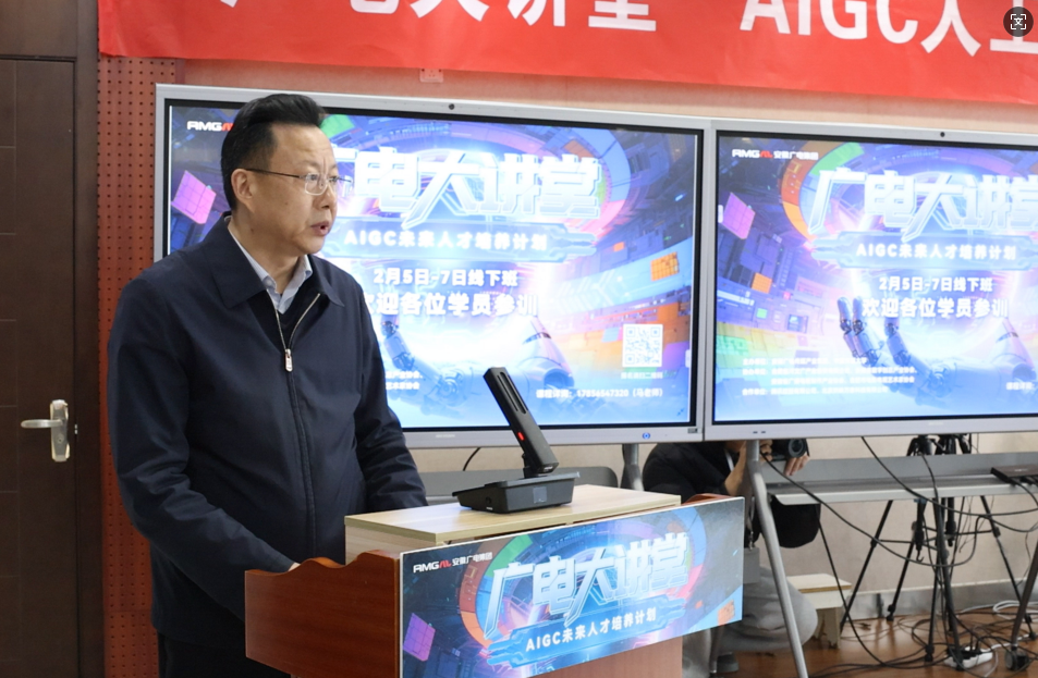 2月5日,由安徽廣電傳媒產(chǎn)業(yè)集團(tuán)主辦的“廣電大講堂”AIGC人工智能技能培訓(xùn)在合肥開班。集團(tuán)黨委書記、董事長周玉作開班動員講話。集團(tuán)黨委副書記、董事王劉生主持開班式。來自全省影視、數(shù)字媒體、文旅廣告等行業(yè)的業(yè)務(wù)骨干、企業(yè)負(fù)責(zé)人以及集團(tuán)相關(guān)板塊員工共40余名學(xué)員參加培訓(xùn)。