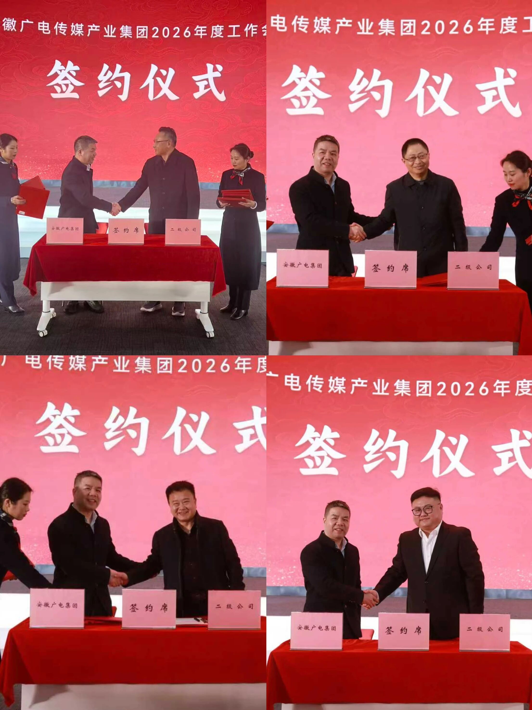 2月13日,安徽廣電傳媒產(chǎn)業(yè)集團(tuán)2026年度工作會議在合肥市中安創(chuàng)谷全球路演中心召開。集團(tuán)黨委書記、董事長周玉作題為《迎難而上 向新向優(yōu) 奮力開創(chuàng)集團(tuán)高質(zhì)量發(fā)展新局面》的講話。集團(tuán)黨委副書記、董事、總經(jīng)理苗峰代表集團(tuán)與二級公司主要負(fù)責(zé)人簽訂2026年生產(chǎn)經(jīng)營及安全生產(chǎn)責(zé)任書。集團(tuán)黨委副書記、董事王劉生主持會議并宣讀《關(guān)于表彰集團(tuán)2025年度先進(jìn)集體、優(yōu)秀個人的決定》,會議表彰了4個先進(jìn)集體和20名優(yōu)秀個人。集團(tuán)黨委委員、紀(jì)委書記、監(jiān)察專員陳德友傳達(dá)省直宣傳文化單位黨風(fēng)廉政建設(shè)會議精神。集團(tuán)領(lǐng)導(dǎo)班子成員、外部董事和全體干部職工出席會議。