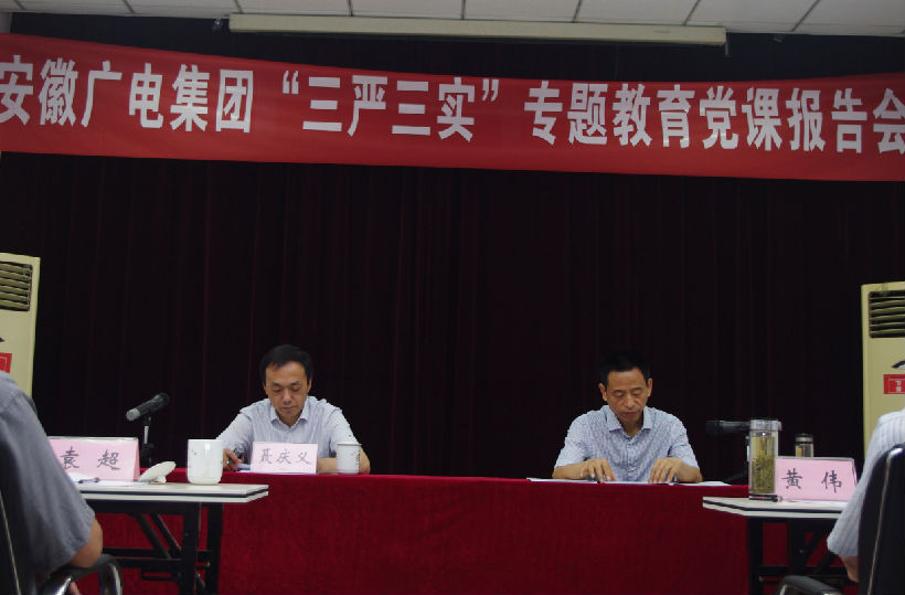 根據(jù)省委要求和《安徽廣電集團“三嚴三實”專題教育實施方案》總體安排,5月19日,集團黨委舉辦“三嚴三實”專題教育黨課報告會,集團黨委書記、董事長李金華為集團中層及以上領導人員,各單位組織人事部門全體職工作了專題黨課報告。集團總經(jīng)理、黨委副書記聶慶義主持報告會。