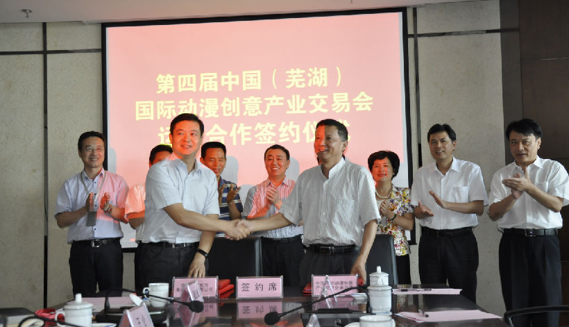 6月19日,第四屆中國國際動漫創(chuàng)意產(chǎn)業(yè)交易會運營合作簽約儀式在安徽廣電集團舉行。省委宣傳部副部長、省新聞出版廣電局局長車敦安,安徽廣電集團董事長、黨委書記李金華,省新聞出版廣電局副局長溫振超,蕪湖市委常委、宣傳部長段玉嘉,蕪湖市政府副市長張志宏等出席儀式。蕪湖市文化委員會代表中國國際動漫創(chuàng)意產(chǎn)業(yè)交易會承辦委與安徽廣電集團所屬五星東方公司簽約。
