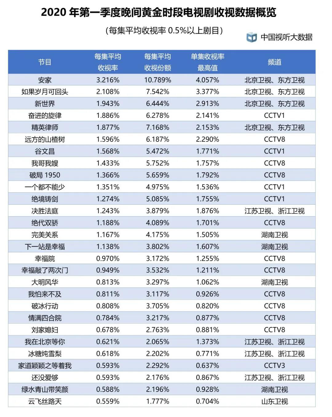 據(jù)“中國視聽大數(shù)據(jù)”(CVB)統(tǒng)計,2020年第一季度相較2019年第四季度全國有線電視和IPTV用戶日均收視總時長上漲22.7%,每日戶均收視時長增長半小時。在此期間,8場晚會,24檔綜藝節(jié)目,15部黃金時段電視劇,15部121集紀(jì)錄片收視率超過1%。