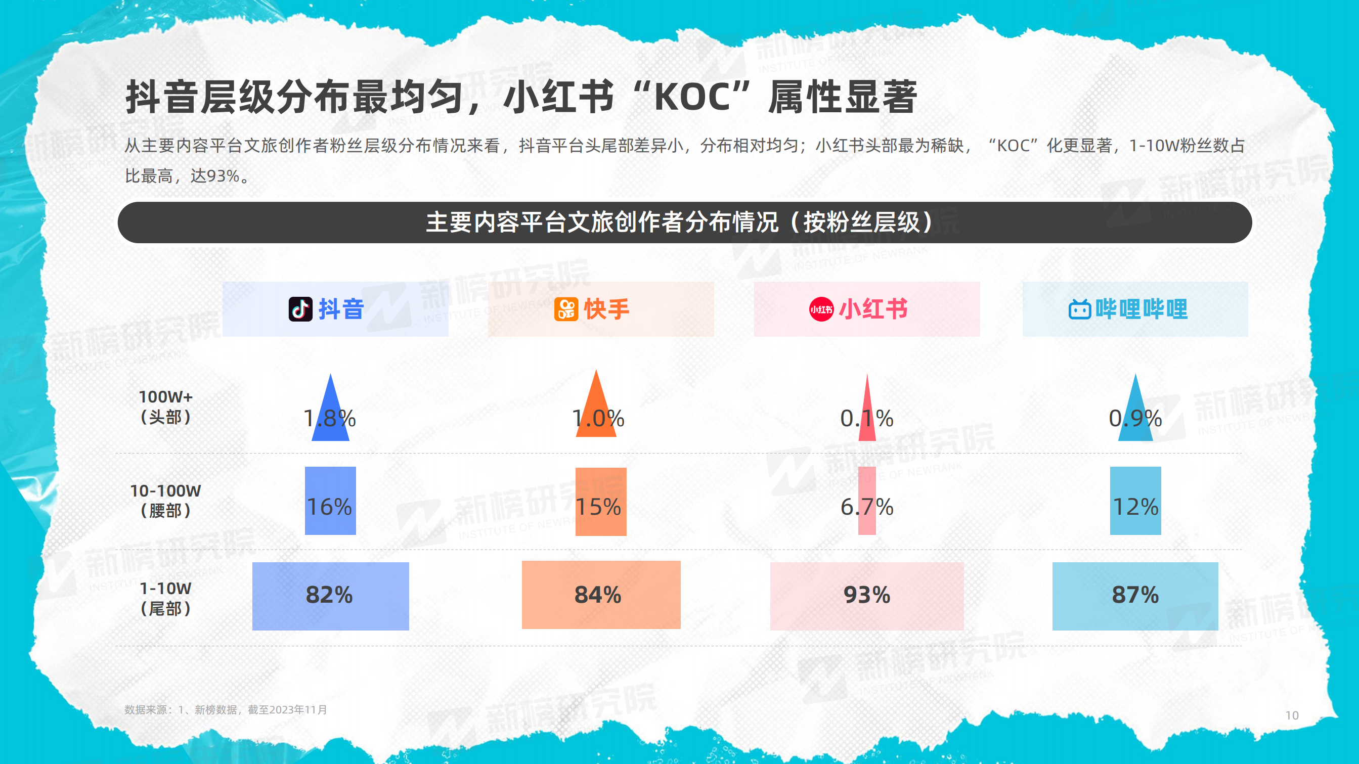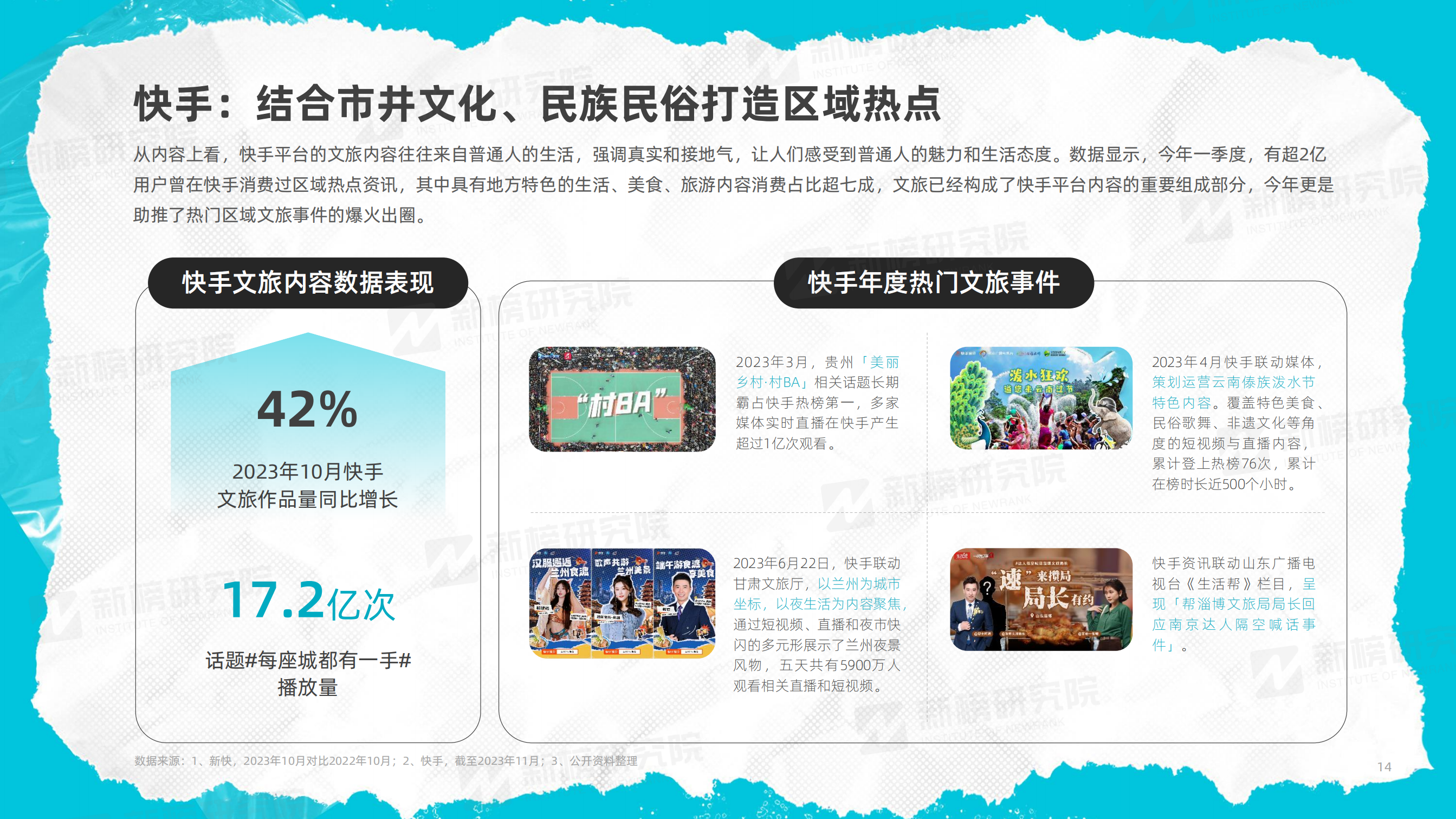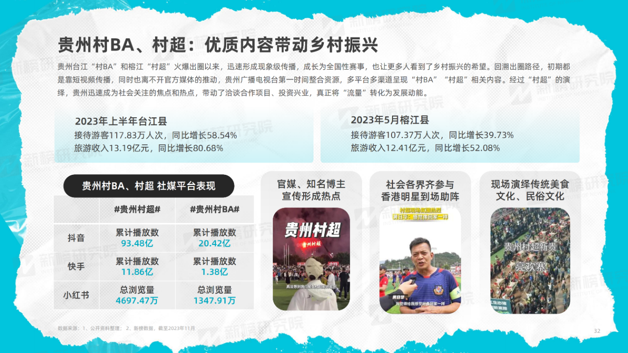 由此,新榜推出《2023年度文旅內(nèi)容洞察報告》,旨在通過對抖音、快手、小紅書、B站、視頻號等平臺的文旅內(nèi)容以及熱門旅行方式的多維度觀察,展現(xiàn)2023年文旅行業(yè)內(nèi)容的發(fā)展現(xiàn)狀,為相關從業(yè)者提供相應的策略建議。