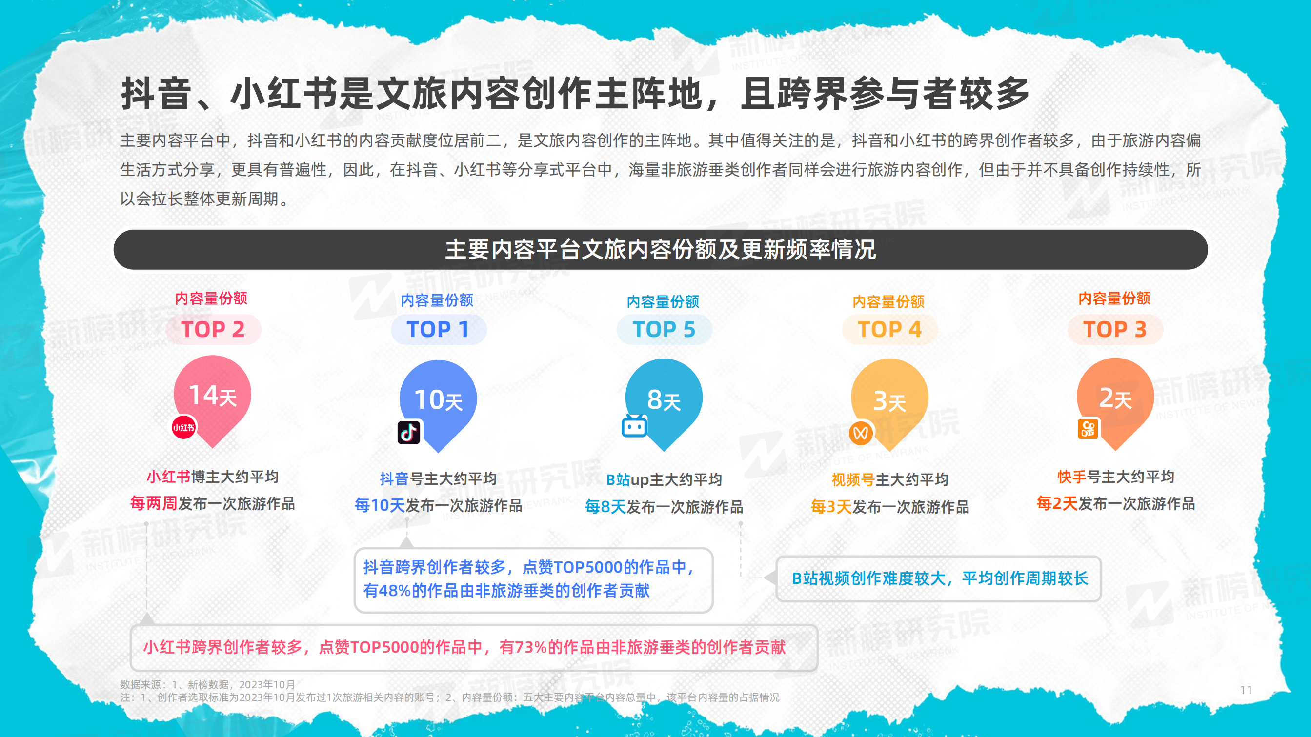 2.抖音、小紅書是文旅內(nèi)容創(chuàng)作主陣地,且跨界參與者較多