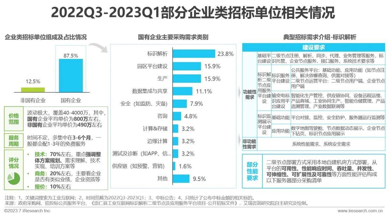 從國有企業(yè)采購的主要類別看,標識解析、園區(qū)平臺建設、生產等是TOP3的需求點,與其承當?shù)碾p重任務息息相關。