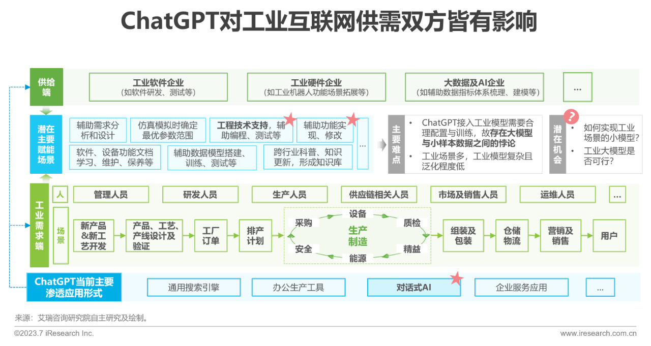 ChatGPT在消費端的應用序幕已經(jīng)拉開,但在工業(yè)端的應用,現(xiàn)階段可暢想但具體應用還需進行深度模型改造、配置與訓練